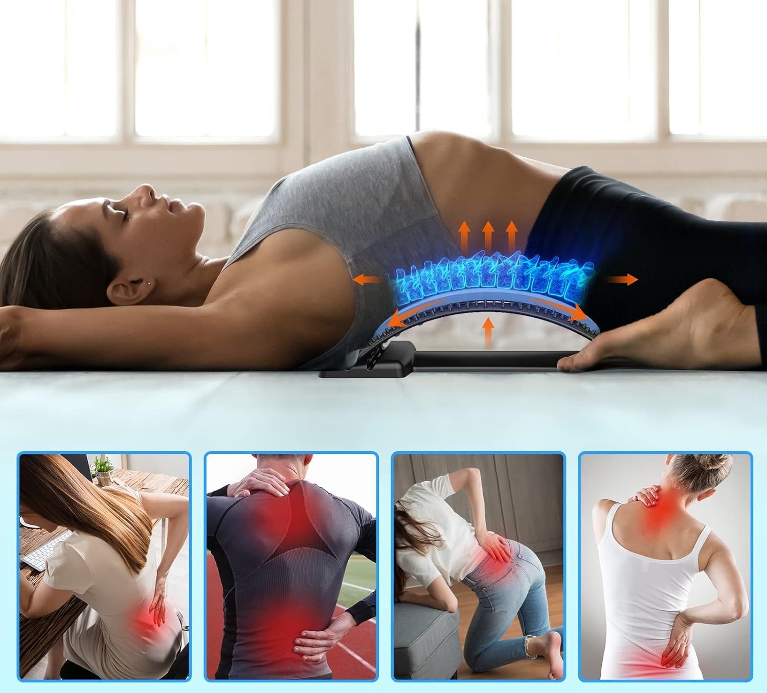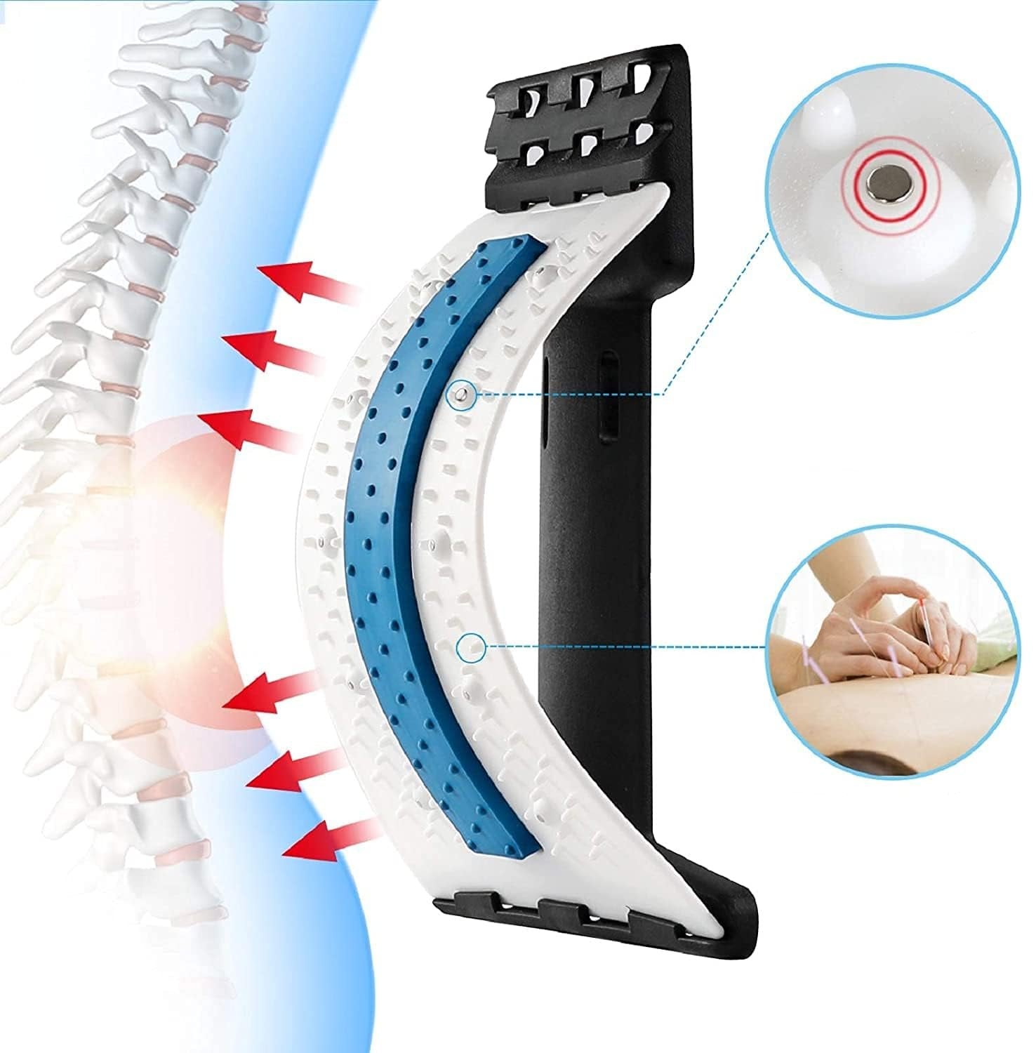 Sprava za istezanje leđa dizajnirana je za učinkovito ublažavanje bolova u leđima i poboljšanje držanja. Svojom ergonomskom strukturom i akupresurnim točkama nudi kombinaciju fizičkog istezanja i akupunkturne masaže koja pomaže rasteretiti kralježnicu, ispraviti držanje i smanjiti napetost i stres u lumbalnom dijelu. Idealne za sve koji se bore s bolovima u leđima, skoliozom ili bolovima u leđima jer su tako precizno usmjerene na kritične točke za brzo olakšanje.