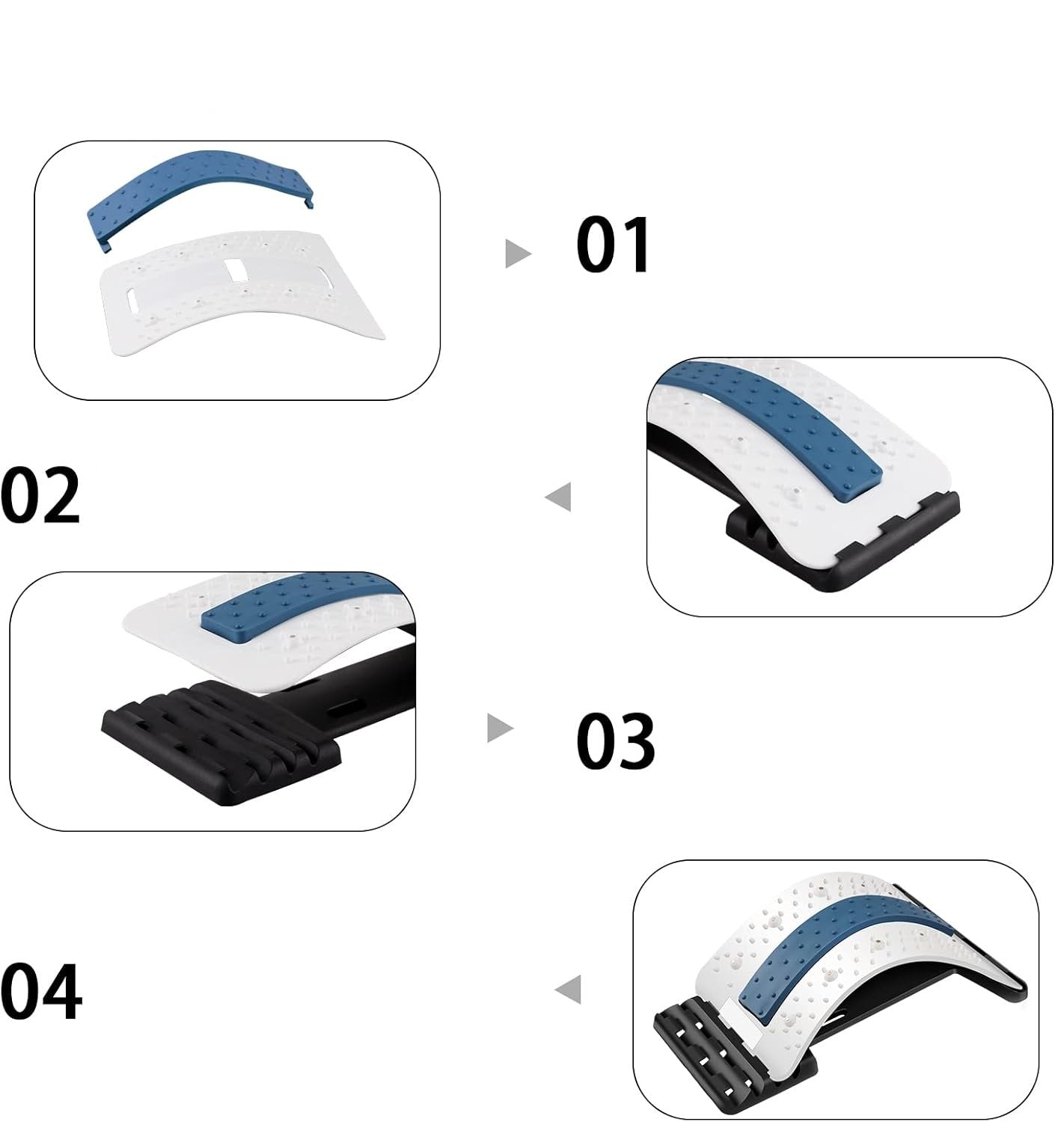 💪 Izdržljiva i prilagodljiva: Izrađena od izdržljive ABS plastike, naša sprava za leđa imaju 3 podesive razine. Pomaže u ublažavanju bolova u leđima, ispravlja posturalne neravnoteže, smanjuje stres na kralježnici i smanjuje pritisak. Ugrađeni jastuk od debele pjene ublažava udarce i pruža bolju zaštitu za donji dio leđa. Također ima 88 masažnih čvorova koji stimuliraju vaše akupresurne točke tijekom istezanja.